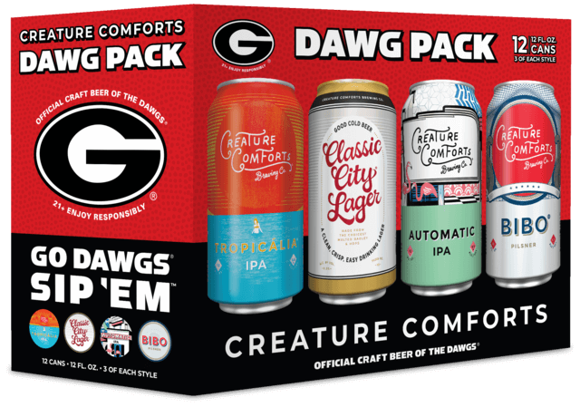 Stock up for gameday with our Dawg Pack featuring Tropicália, Classic City Lager, Automatic, and Bibo.